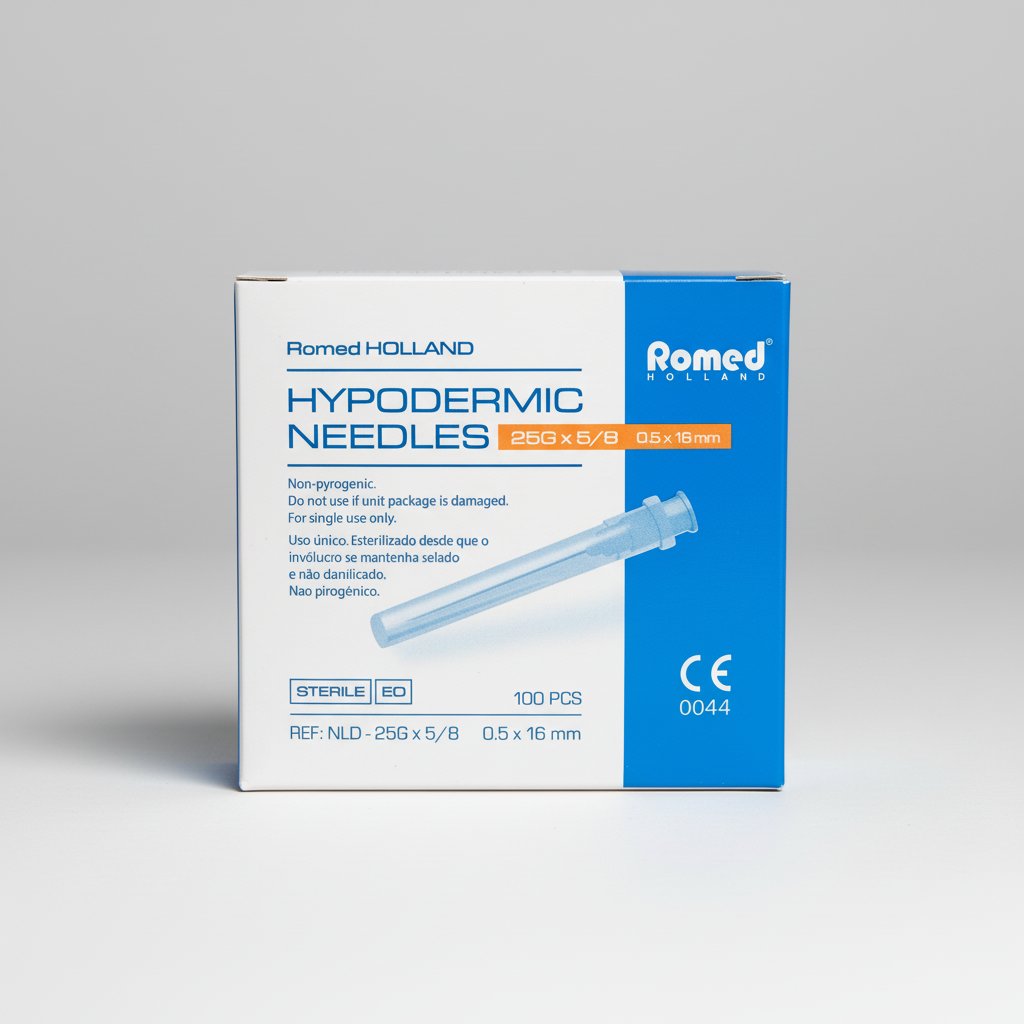 • Tredubbel fasad, smord nål i rostfritt stål, utformad för att minimera patientens obehag